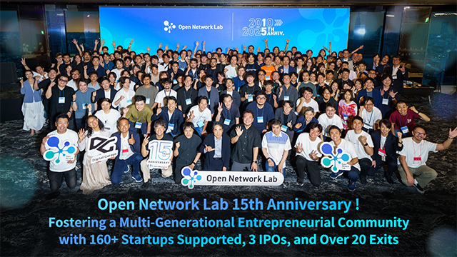 Additionally, Open Network Lab (Onlab), which operates Japan’s first seed accelerator program, celebrated its 15th anniversary since its establishment in 2010. To commemorate this milestone, we held the “Open Network Lab 15th Anniversary Party” in June 2025. Under the concept of “connecting generations and celebrating challenges,” approximately 200 people gathered, including Onlab alumni and past mentors. We have grown into a major community that celebrates the challenges of graduate entrepreneurs and connects entrepreneurs with one another.