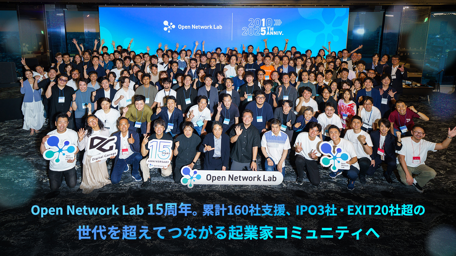 また、2010年より日本初のシードアクセラレータープログラムを運営する「Open Network Lab(Onlab)」も15周年を迎え、2025年6月に「Open Network Lab 15th Anniversary Party」を開催しました。「世代をつなぐ、挑戦を讃える」をコンセプトに、Onlab卒業生、歴代メンターなど約200名が一堂に会し、卒業生起業家たちの挑戦を讃え、起業家同士がつながる一大コミュニティへと成長しました。